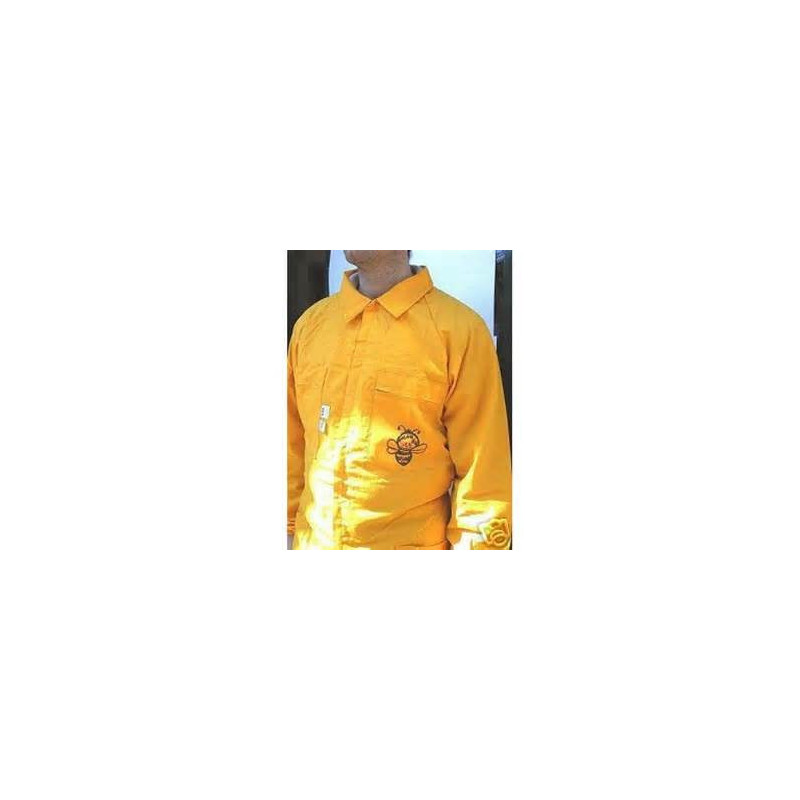 Tuta gialla da apicoltore , in tela di cotone 100% con elastici ai polsi e alle caviglie, lunga chiusura con cerniera lampo e 4 tasche.