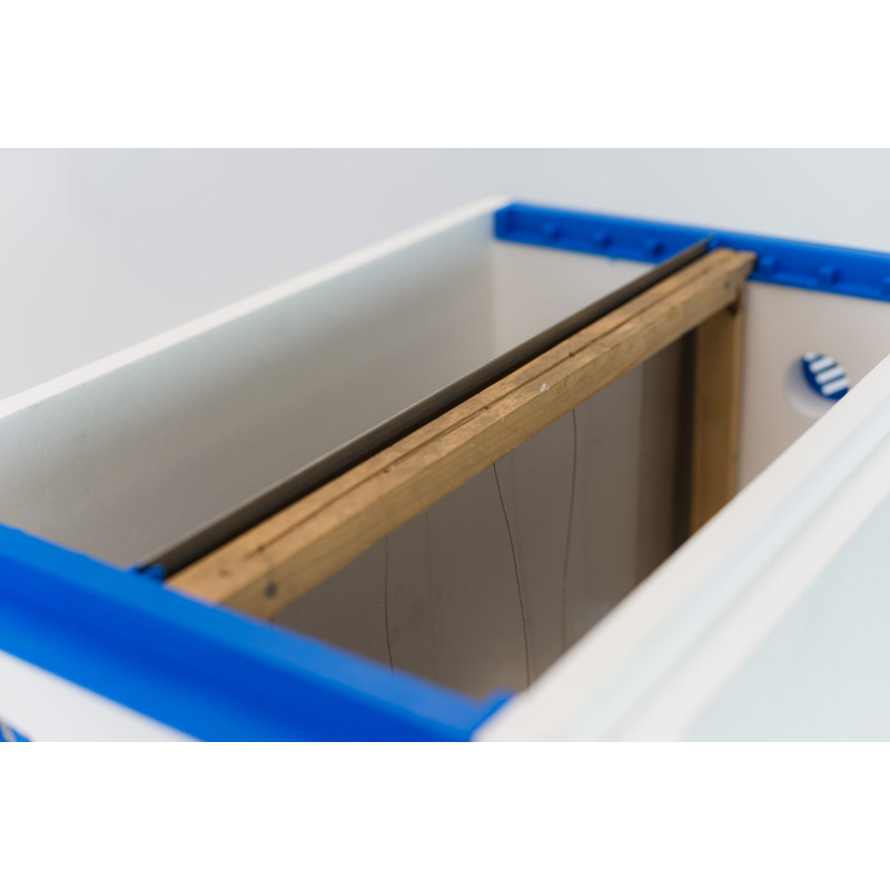 Permette di ospitare due diverse famiglie di api nella stessa arnia (3 telai ciascuna). Oppure può essere usato per creare un nucleo di fecondazione. La bordatura superiore impedisce al divisorio di piegarsi e creare un passaggio tra un nucleo e l’altro.