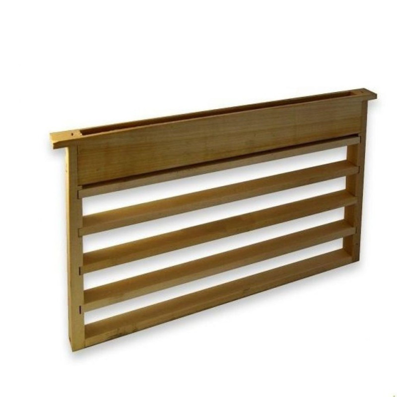 Il telaio portastecche ha misure uguali al normale telaino da nido (470 × 25 × 300 mm), e viene prodotto con un nutritore nella parte alta.