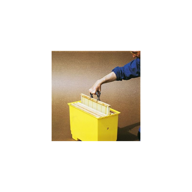 La pinza serve per estrarre un favo dall'arnia utilizzando una mano sola, durante l'ispezione ai telaini.