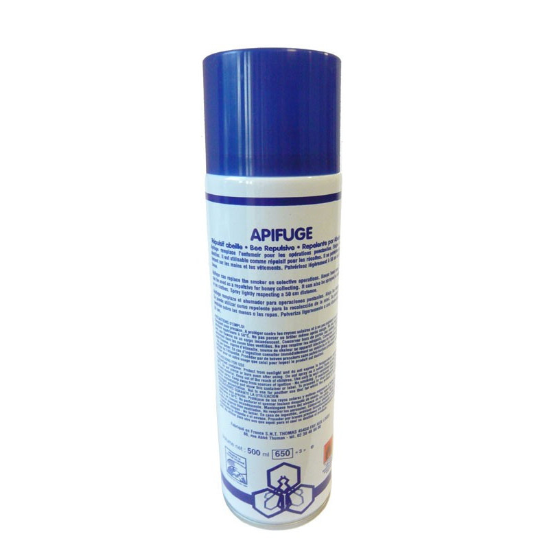 Apifuge, prodotto liquido in bomboletta spray che è di uso immediato per sostituire l’affumicatore nei casi di urgenza. Ha un profumo gradevole, non disturba le api e l'apicoltore. Favoloso per far rientrare nell’alveare le api del predellino in caso di transumanza (500 ml).