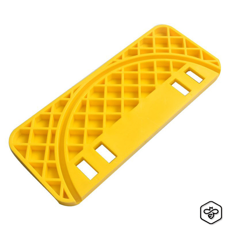 In materiale plastico alimentare giallo con misure: cm. 33 x 14 x 2 cm. di spessore