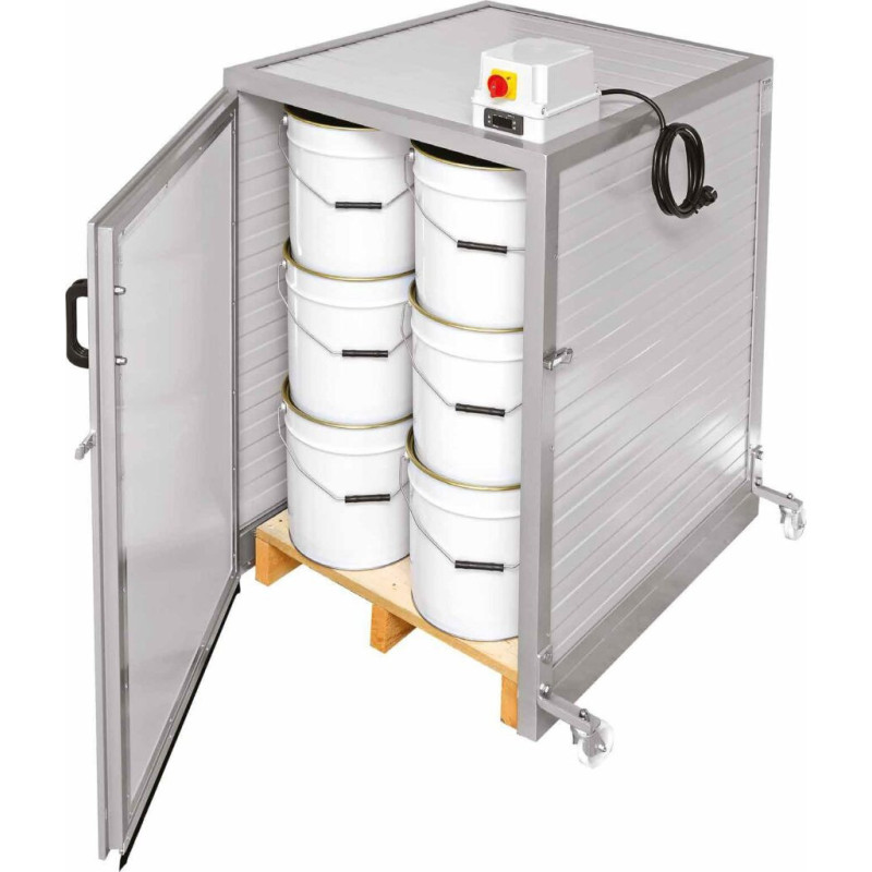 Camera calda elettrica con termo regolatore, a pareti coibentate per rendere liquido il miele cristallizzato Capacità 1 fusto da 300 kg