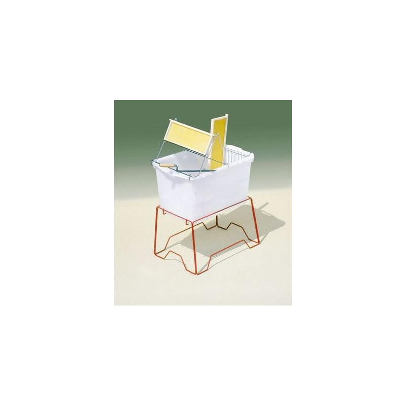 Banco per disopercolare, con vasca in plastica alimentare 63x46x39 cm, completo di sgocciolatoio per gli opercoli, appoggio per telaini, coperchio e con supporto metallico verniciato.