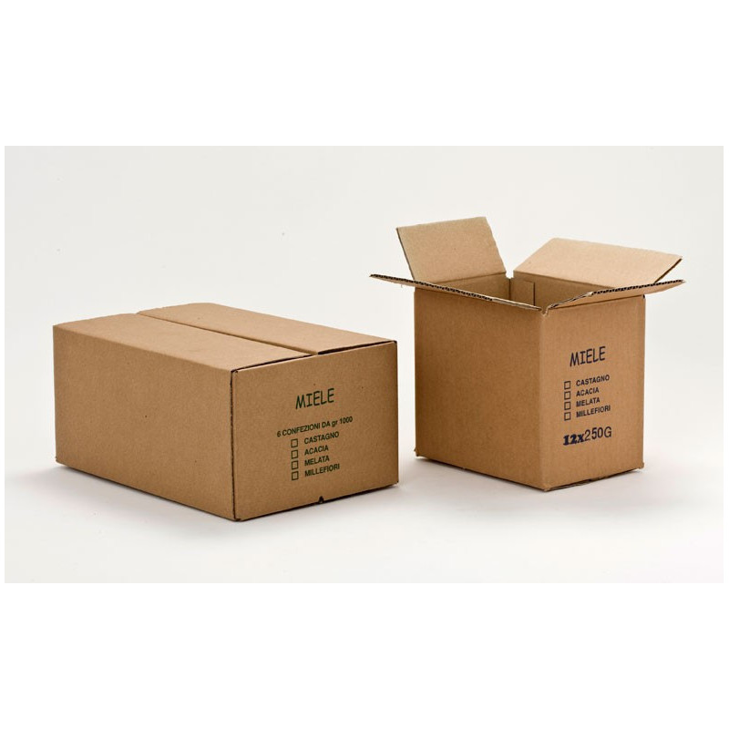 SCATOLA CARTONE PER 12 VASETTI VETRO DA 250 GR.