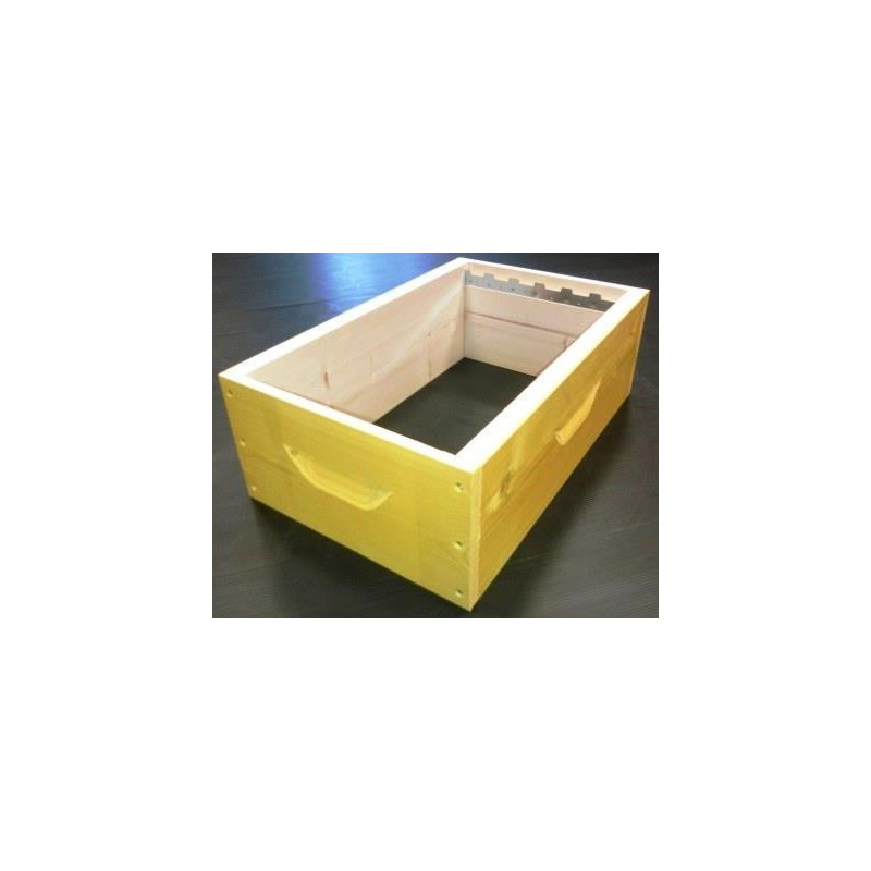 Melario per arnia D.B. 7 favi, in legno di abete, distanziatori zincati 6 tacche, montato, verniciato. Misure 320x500 h170 mm
