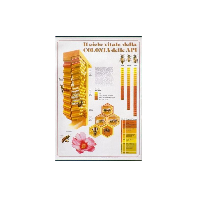 Poster illustrante il ciclo vitale delle api,importante ausilio per corsi di apicoltura o conferenze