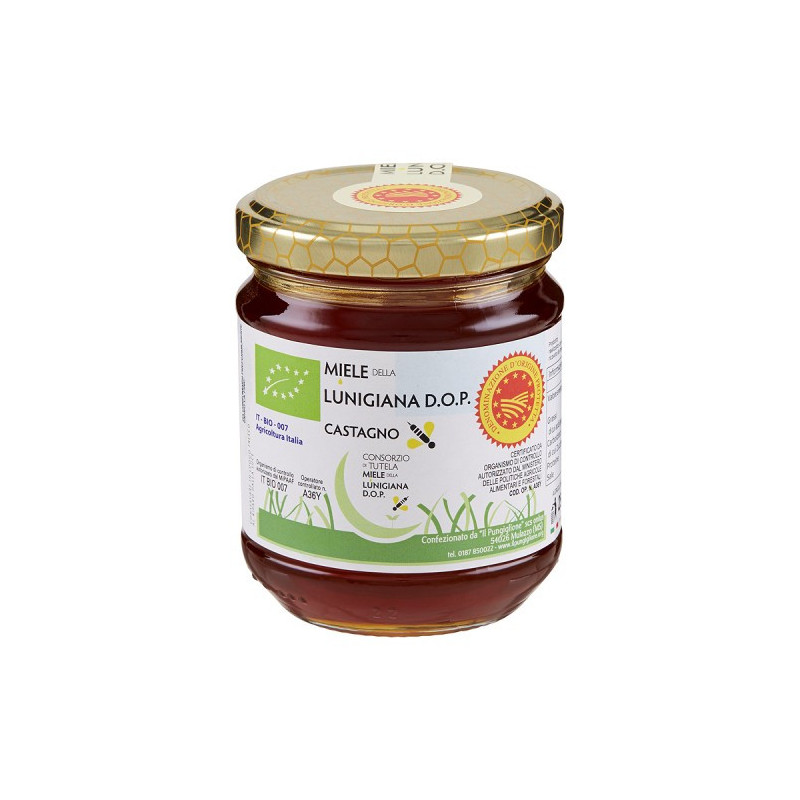 Il miele di Castagno biologico DOP è l’eccellenza del miele italiano, l’unico miele DOP toscano insieme all’acacia della Lunigiana. La doppia certificazione BIO e DOP garantisce il consumatore sulla purezza di questo miele. La purezza è esaltata dai procedimenti di estrazione, lavorazione e confezionamento tradizionali come previsto dalle severe norme del disciplinare DOP. Aroma intenso, gusto inconfondibile con la presenza di una nota amara che va a stemperare la dolcezza del miele.