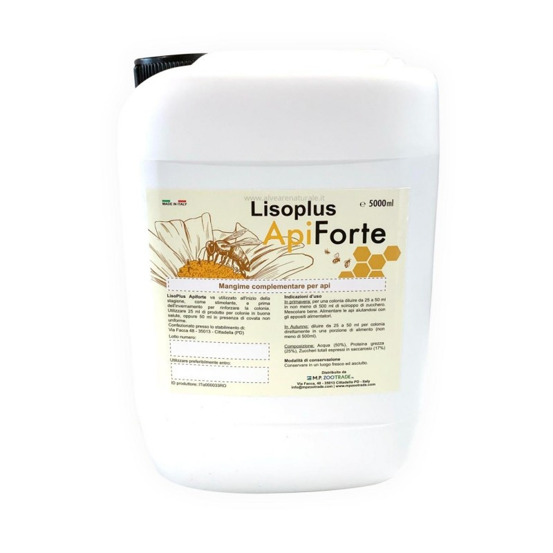 MP Zootrade ha sviluppato un mangime complementare per api composto da una serie di ingredienti naturali di altissima qualità. Lisoplus® è un prodotto fondamentale per il sostegno della colonia, migliorando e rafforzando la salute della famiglia. Aumenta naturalmente la covata rafforzando le larve e migliorandone la qualità.
