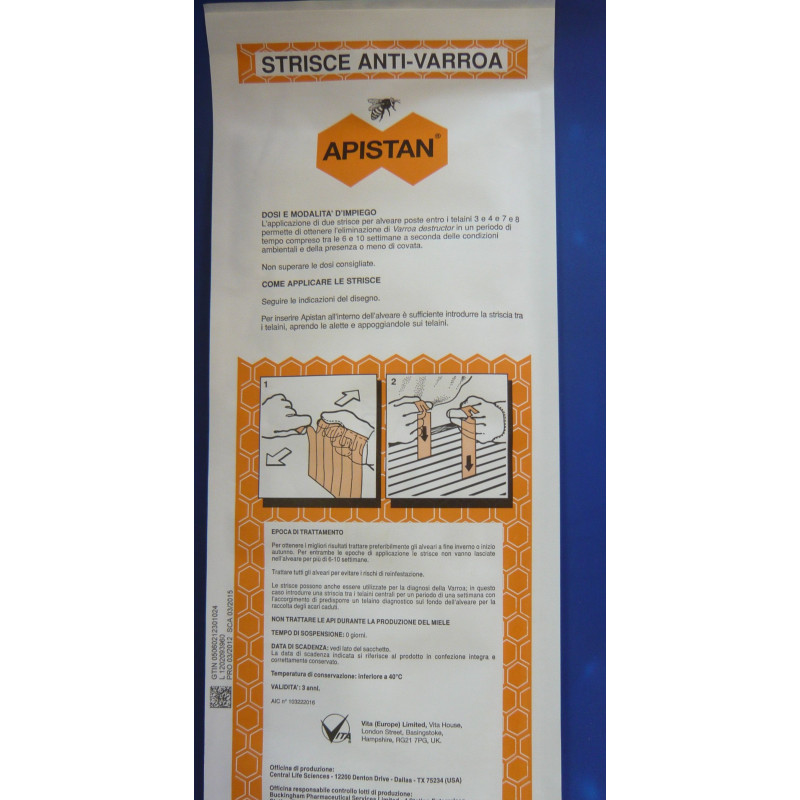 APISTAN è di facile utilizzo. Inserire 2 strisce fra i favi